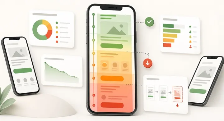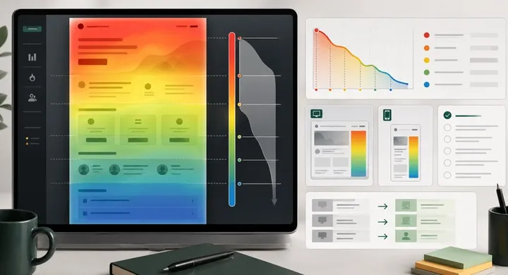 スマートフォンのLPで起きる途中離脱を、スクロール到達率、CTA位置、情報量、タップ導線から見直すためのヒートマップ分析手順です。